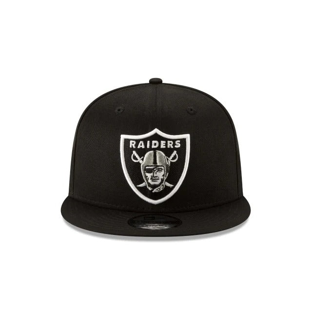 The Las Vegas Raiders Basic Black 9FIFTY Snapback features an allover team colored fabrication with an embroidered Raiders logo at the front panels and an adjustable snapback closure at the rear.