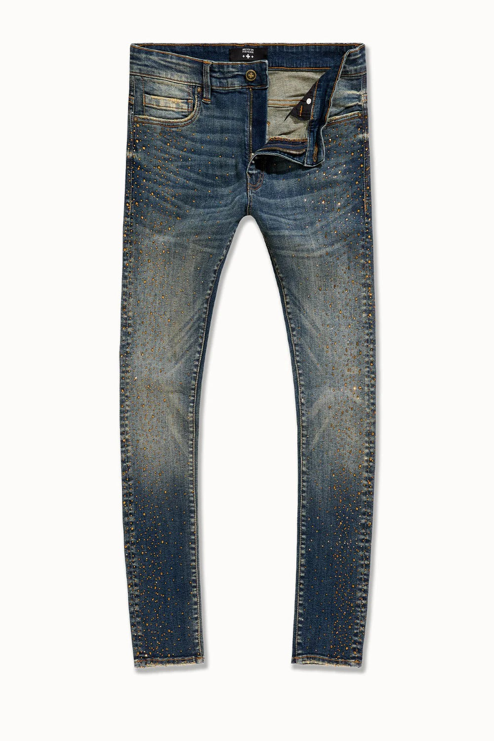 - Skinny tapering from knee to ankle